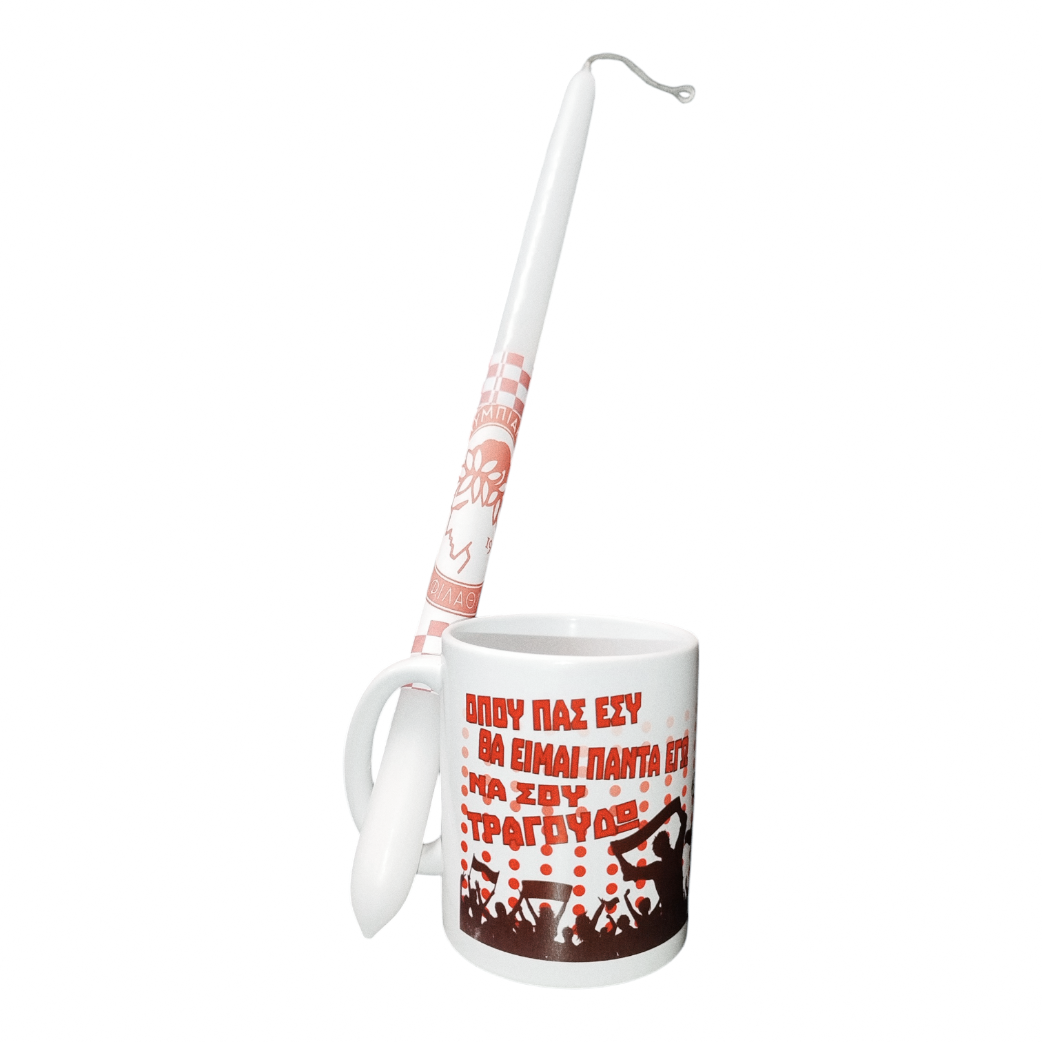 Σετ Λαμπάδα 40εκ & Κούπα Ολυμπιακός “ΟΠΟΥ ΠΑΣ ΕΣΥ… ΤΡΑΓΟΥΔΩ”