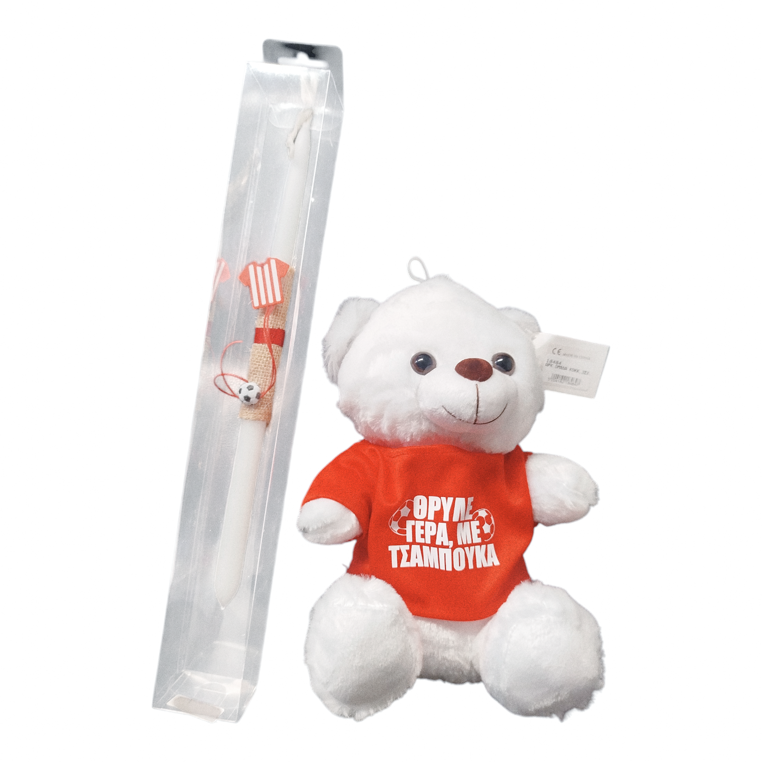 Σετ Λαμπάδα Ολυμπιακός 40εκ. με Ξύλινο Διακοσμητικό & Αρκουδάκι “ΘΡΥΛΕ ΓΕΡΑ, ΜΕ ΤΣΑΜΠΟΥΚΑ”