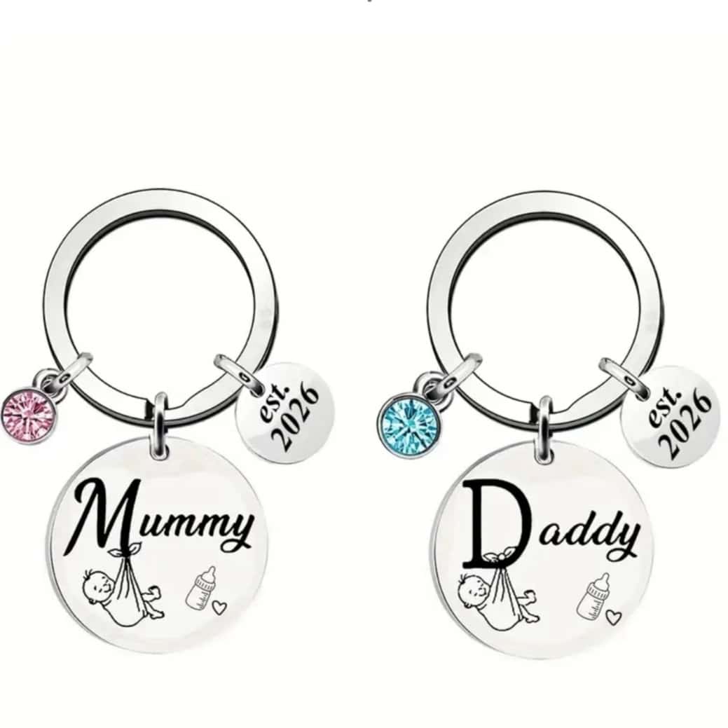 -18%Γλυκό σετ από 2 μπρελόκ με τις επιγραφές “Mum” και “Daddy”, ιδανικό για να συμβολίζει την αγάπη και τον δεσμό της οικογένειας. Κομψός και πρακτικός σχεδιασμός για κλειδιά, τσάντες ή σακίδια. Ένα υπέροχο δώρο για γονείς, επετείους ή για να γιορτάσετε τη γέννηση ενός παιδιού με στυλ και συναίσθημα.