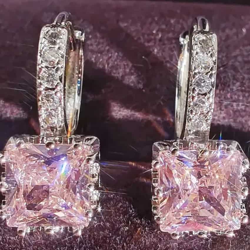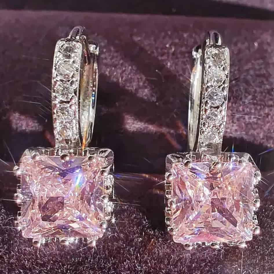 Σκουλαρίκια Ασημί με Ροζ Πέτρα