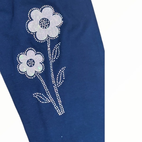 Σκούρο Μπλε Κολάν Με Στρας Λουλούδια