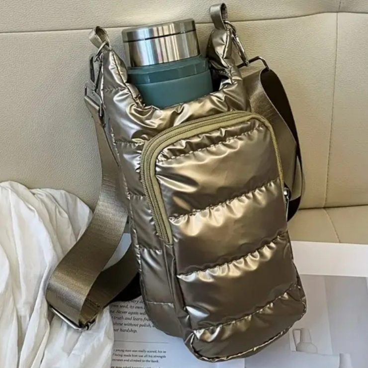 Κατασκευασμένη από ανθεκτικά υλικά, προσφέρει προστασία στο μπουκάλι σας, ενώ ο ελαφρύς σχεδιασμός της την καθιστά ιδανική για σχολείο, βόλτες, εκδρομές ή γυμναστήριο. Μπορεί να φορεθεί εύκολα στον ώμο ή να κρατηθεί στο χέρι, εξασφαλίζοντας άνετη μεταφορά.