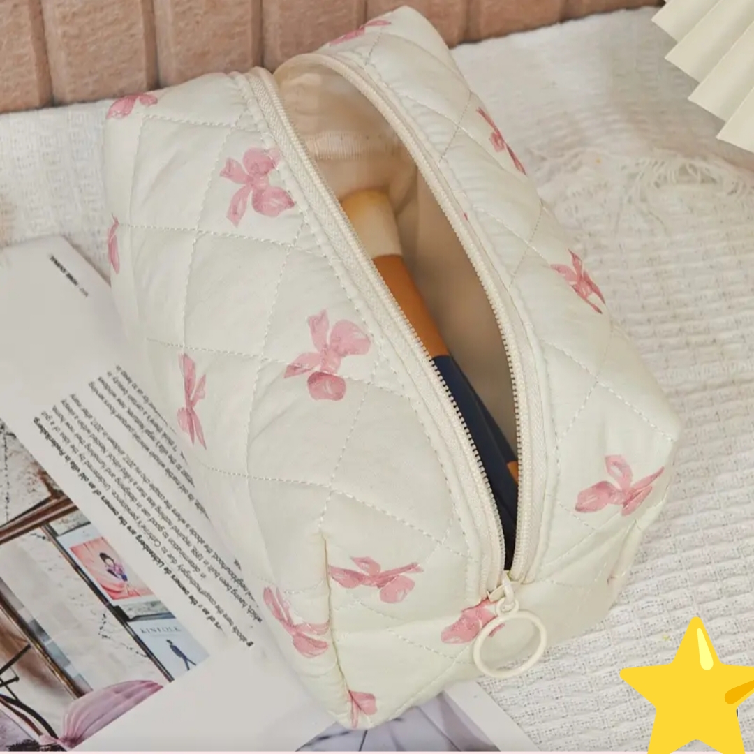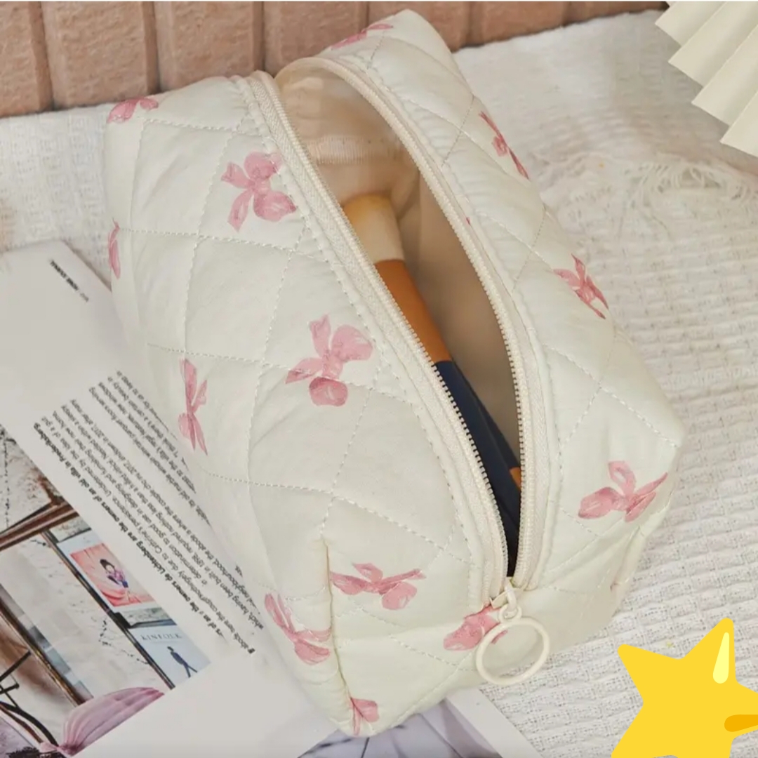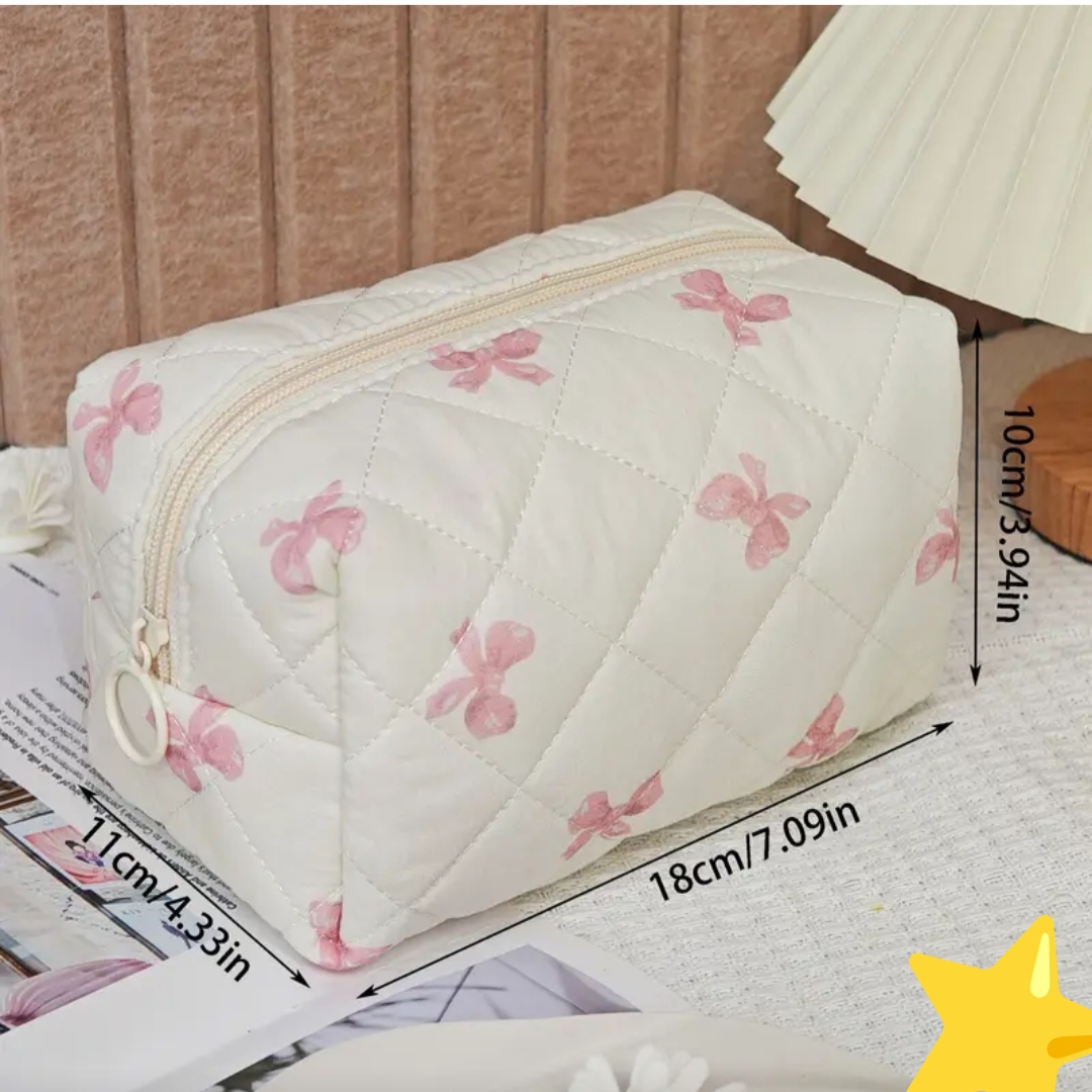 Τσαντάκι Άσπρο Μακιγιάζ με Ροζ Φιόγκους
