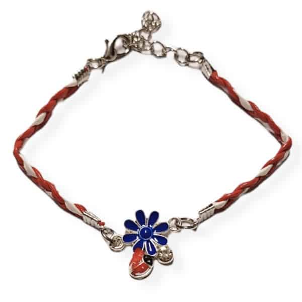 -17%Εορταστικό Βραχιόλι Μαρτάκι με Λευκή και Κόκκινη Δερματίνη και Μεταλλικό Λουλούδι με Πασχαλίτσα για ‘Ολες τις Φίλες μας.